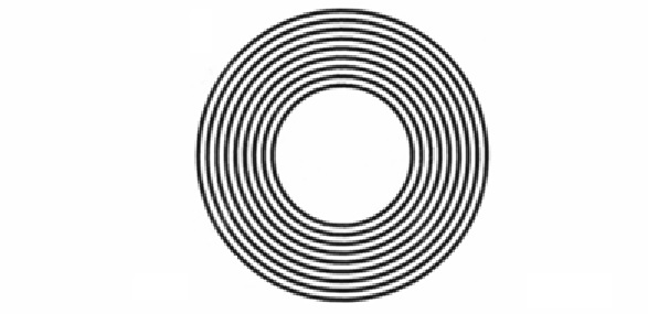 Este é um gráfico de proteção. É usado com um testemunho (foto, pedaço de unha ou roupa não lavada) do que se quer proteger, (uma pessoa, ambiente ou objeto) no centro do círculo interno. Nos símbolos de radiestesia, o número 9 é considerado indestrutível pelo fato de ser o último número numerológico.