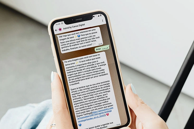 Essa nova funcionalidade permite que você envie sua dúvida pelo WhatsApp e receba a resposta de um especialista real. Tudo acontece com a mediação da Astrocentro Astrid, nossa inteligência virtual. Mas você sabe como ela trabalha nos bastidores para garantir que sua pergunta chegue às mãos certas?